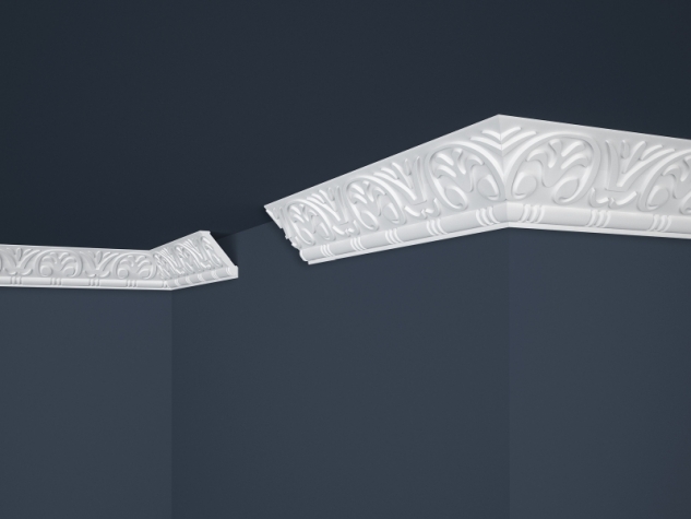 Gazdagon mintázott mennyezeti díszléc, amely részletgazdag felületével karakteres megjelenést kölcsönöz a térnek. A precízen kialakított dekoratív minta elegáns hangsúlyt ad a mennyezetnek, miközben praktikus kialakításának köszönhetően felszerelése gyors és egyszerű. Vízbázisú festékkel festhető, így harmonikusan illeszthető klasszikus, neoklasszikus vagy akár modern terekben is.