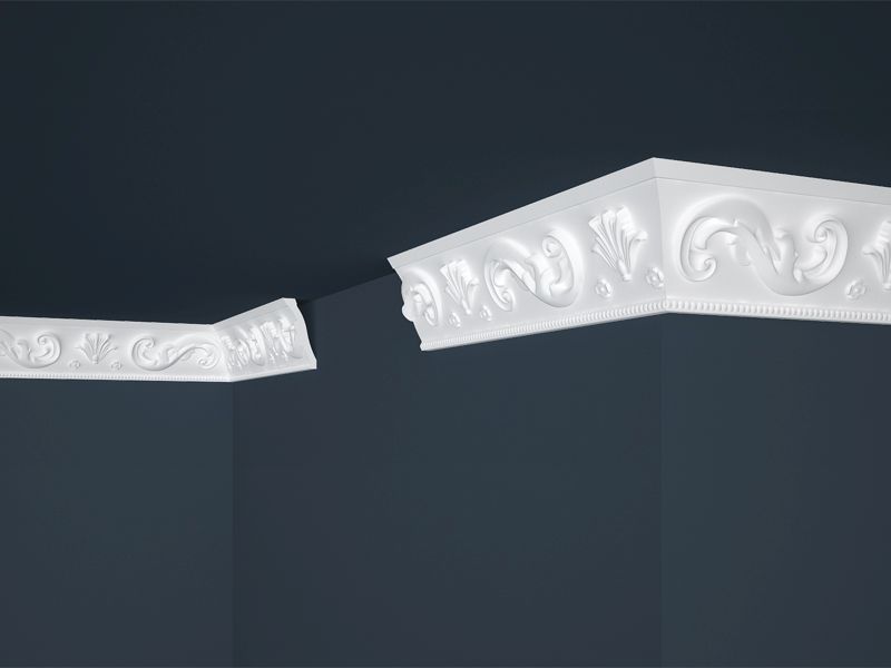 Gazdagon mintázott mennyezeti díszléc, amely részletgazdag felületével karakteres megjelenést kölcsönöz a térnek. A precízen kialakított dekoratív minta elegáns hangsúlyt ad a mennyezetnek, miközben praktikus kialakításának köszönhetően felszerelése gyors és egyszerű. Vízbázisú festékkel festhető, így harmonikusan illeszthető klasszikus, neoklasszikus vagy akár modern terekben is.